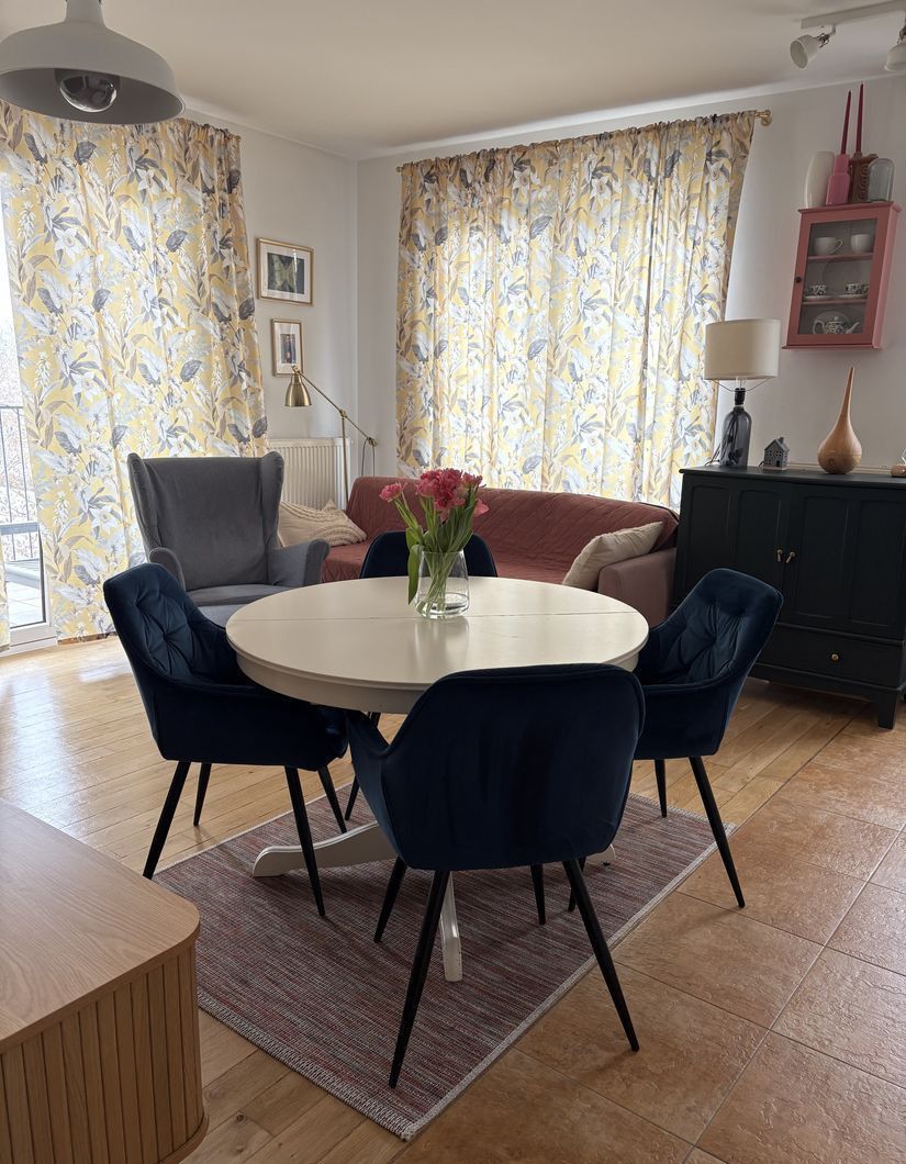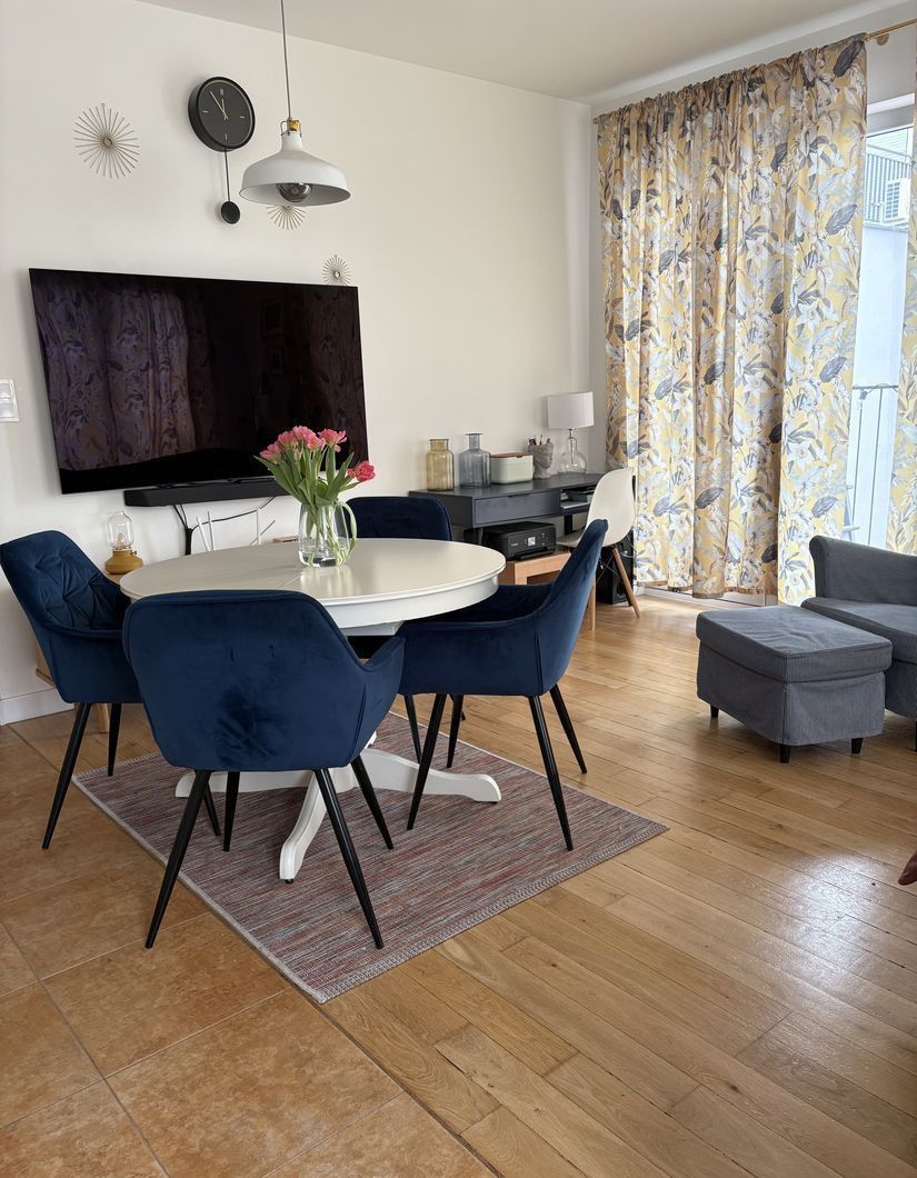 Mieszkanie w 2021r. zostało gruntownie odświeżone, łącznie z odmalowaniem wszystkich pomieszczeń, cyklinowaniem drewnianej podłogi i wymiany takich urządzeń jak: pralka, zmywarka oraz płyta indukcyjna. Ekspozycja okien to zachód i północ w przypadku salonu z aneksem kuchennym oraz północ w przypadku 2 pozostałych pokojów.