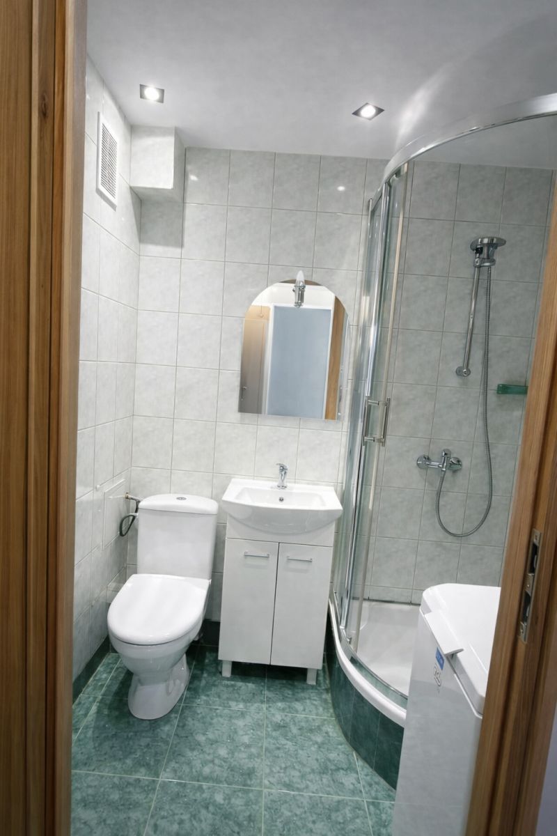 Łazienka po odnowieniu: nowa pralka Electrolux, umywalka, WC