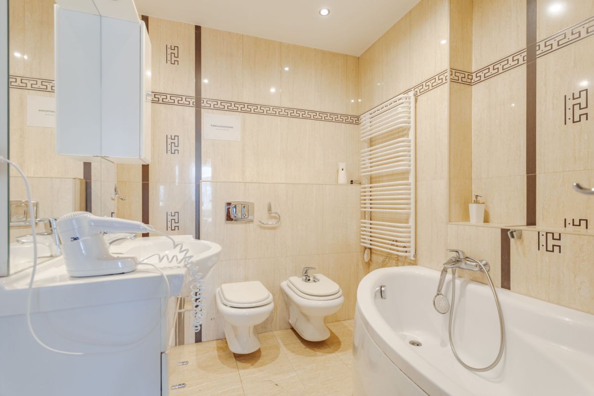 - łazienki z wanną, prysznicem i WC