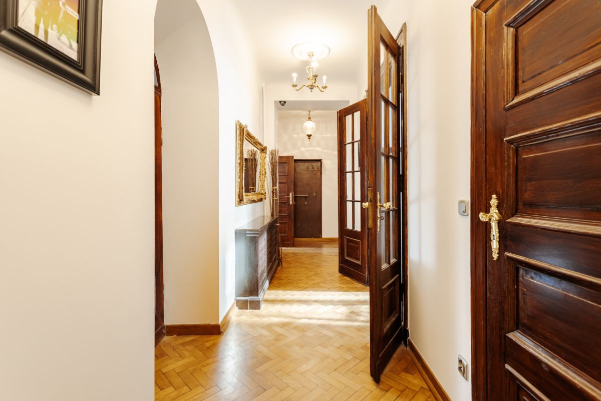 Dwustronne, wschód - zachód, wysokie na 3.15 m, z zachowaną przedwojenną stolarką drzwiową i oryginalnym dębowym parkietem, przywołuje klimat przedwojennej Warszawy.