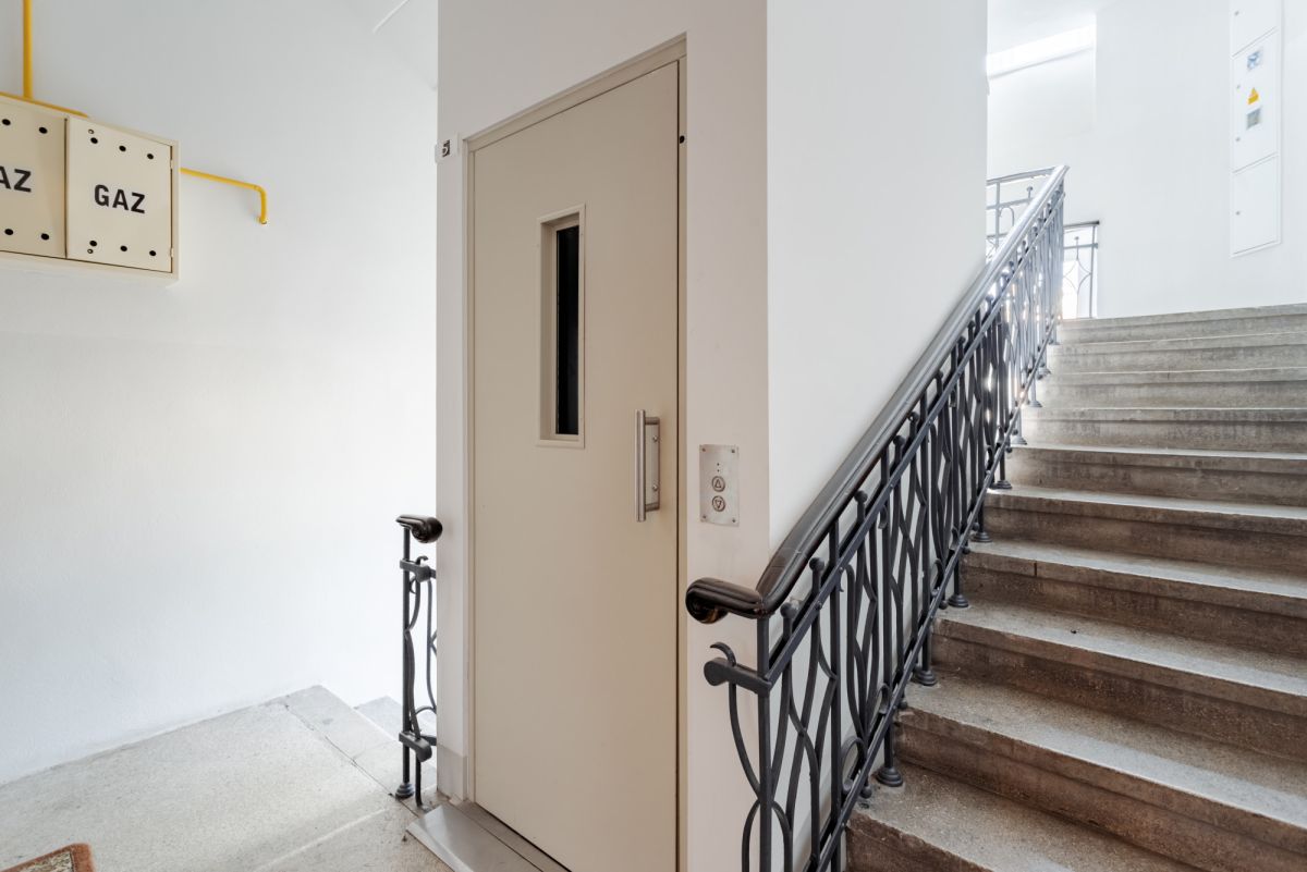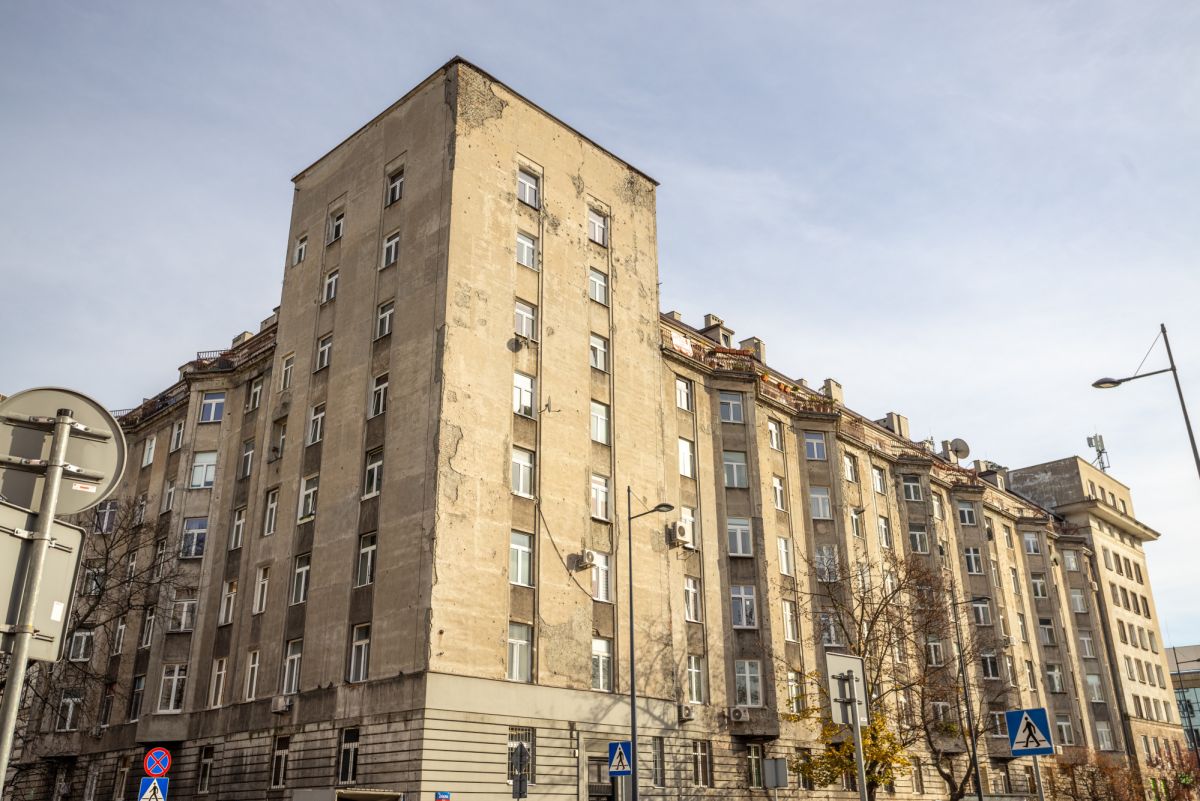 To niezwykłe mieszkanie mieści się na 5 piętrze 6 piętrowego budynku z windą, wzniesionego w latach 1925-1929 dla pracowników PKP.