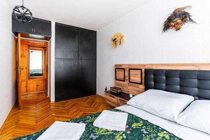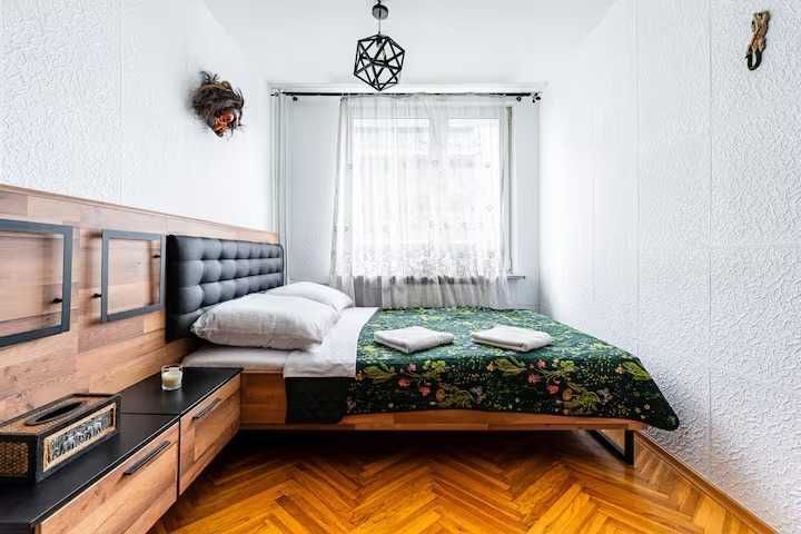 • sypialni z nowym, dużym i wygodnym łóżkiem oraz widokiem na wschód — naturalne poranne światło,