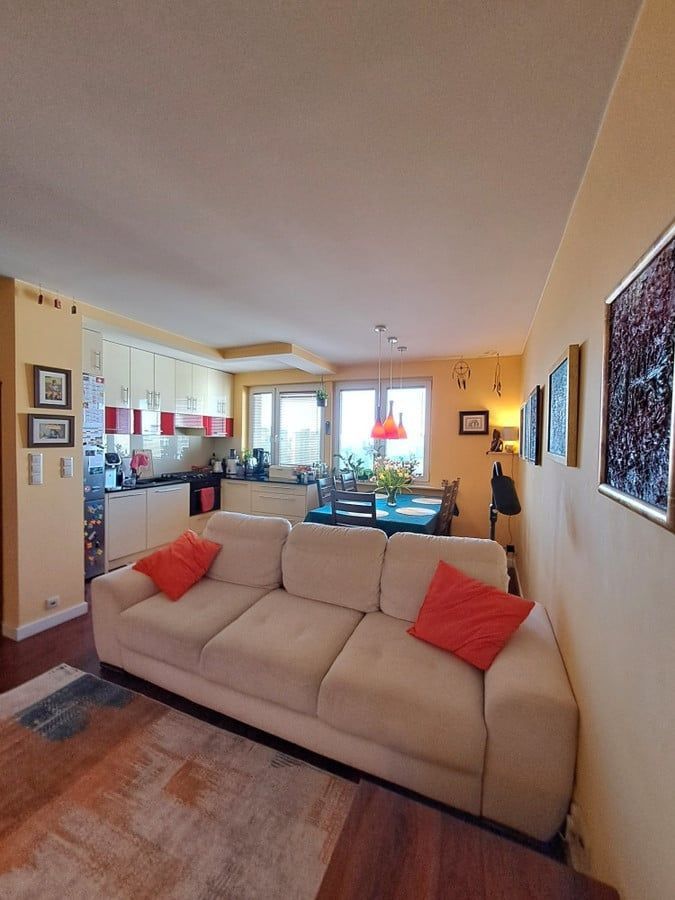 Przestronne, dwustronne, 3 pokojowe mieszkanie o powierzchni około 70 m2, położone na ostatnim piętrze 11 kondygnacyjnego budynku.
