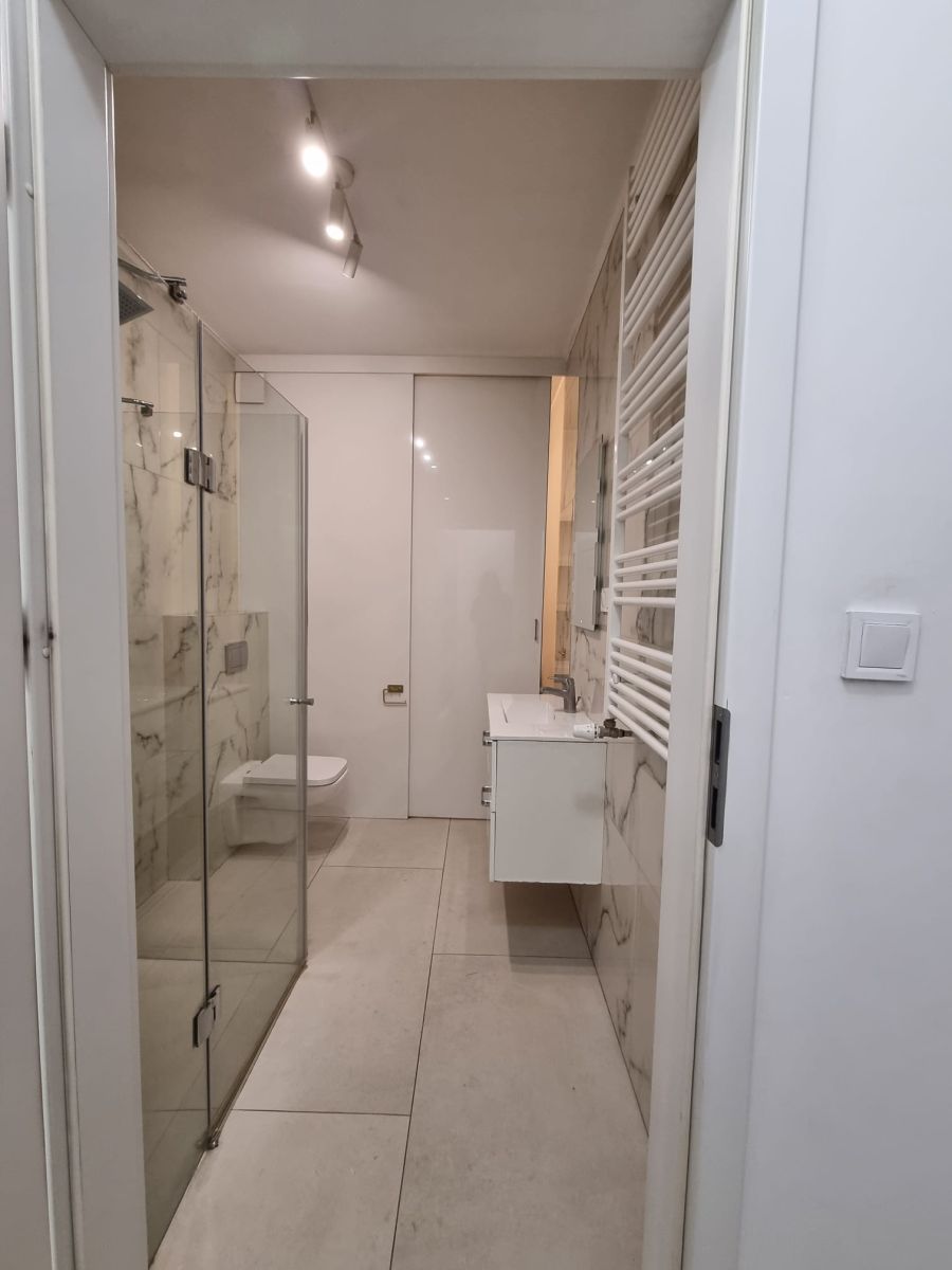 - łazienka 6 m2 prysznic z odpływem liniowym