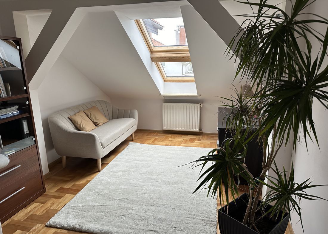 Wyjątkowe, pełne światła mieszkanie o powierzchni 114,57 m² (134 m² po podłodze), położone na ostatniej kondygnacji kameralnego budynku.