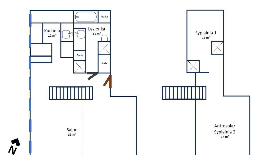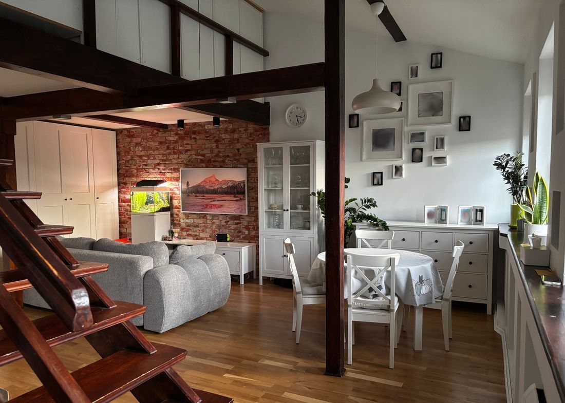 Jest to jasne, wyjątkowe lokum, któremu charakteru nadaje antresola oraz wysokość w najwyższym punkcie ok 6 m.