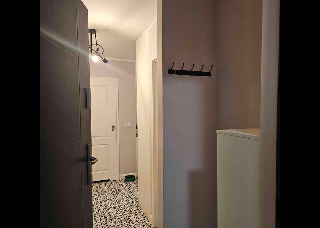 Mieszkanie jest dwustronne, z ekspozycją wschód-zachód, co zapewnia doskonałe doświetlenie wnętrz przez cały dzień. Okolica jest spokojna i cicha, a sąsiedzi bardzo uprzejmi i życzliwi.
