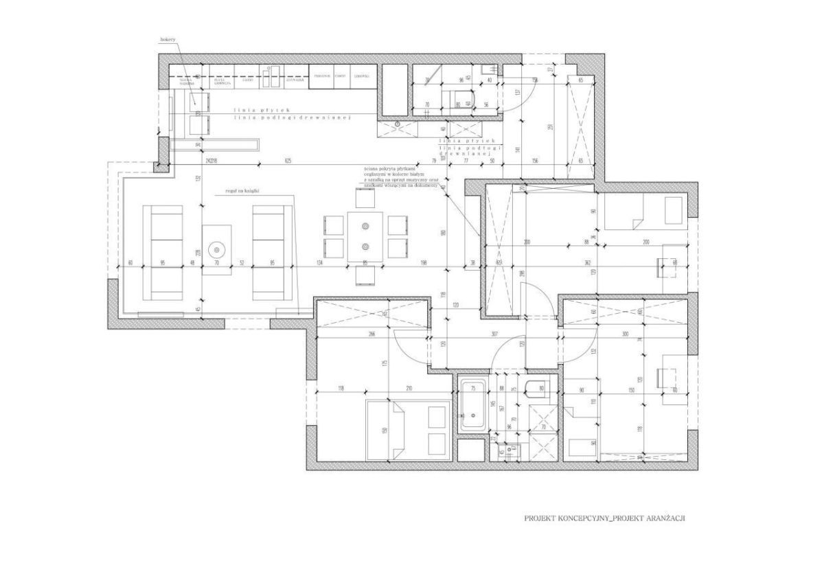 - salon z aneksem kuchennym (45m2) z wyjściem na taras 6m2 i balkon 4m2