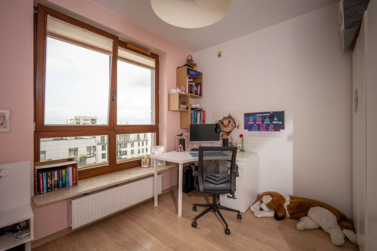Mieszkanie usytuowane na 8 piętrze w dominancie apartamentowca, co wyróżnia to mieszkanie wśród innych ofert, zapewnia poczucie prywatności, widok z okien, oraz dużo światła w ciągu całego dnia. Z okien roztacza się widok na trzy strony świata. Mieszkanie jest bardzo dobrze wyizolowane akustycznie i termicznie. Wysokość pomieszczeń 270 cm.